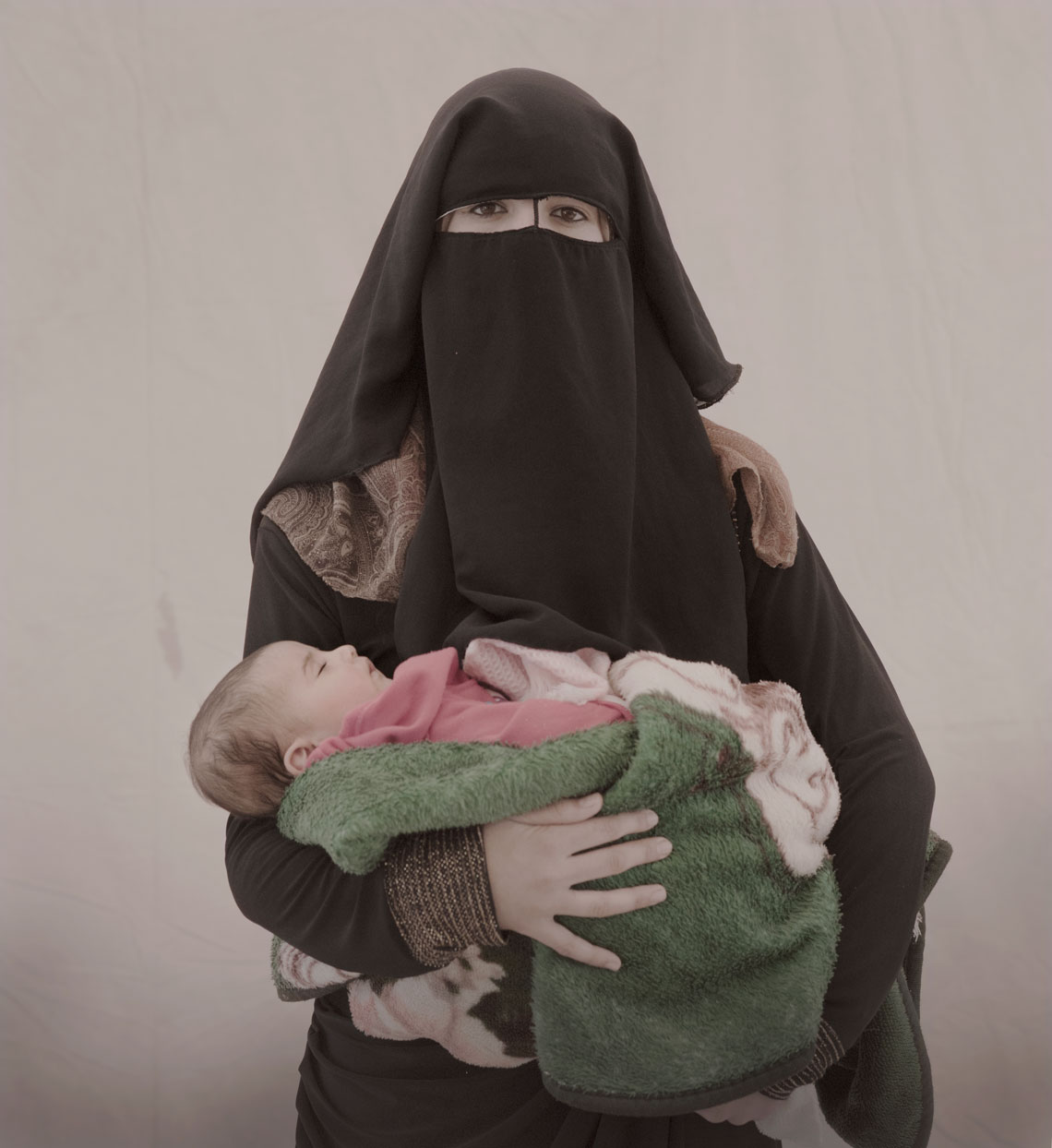 I live in the camp with my husband and his parents. My parents and my brothers are here, too. I used to go to school both here and in my home country. I liked school, but I stopped. I have a daughter now, so I can’t go.